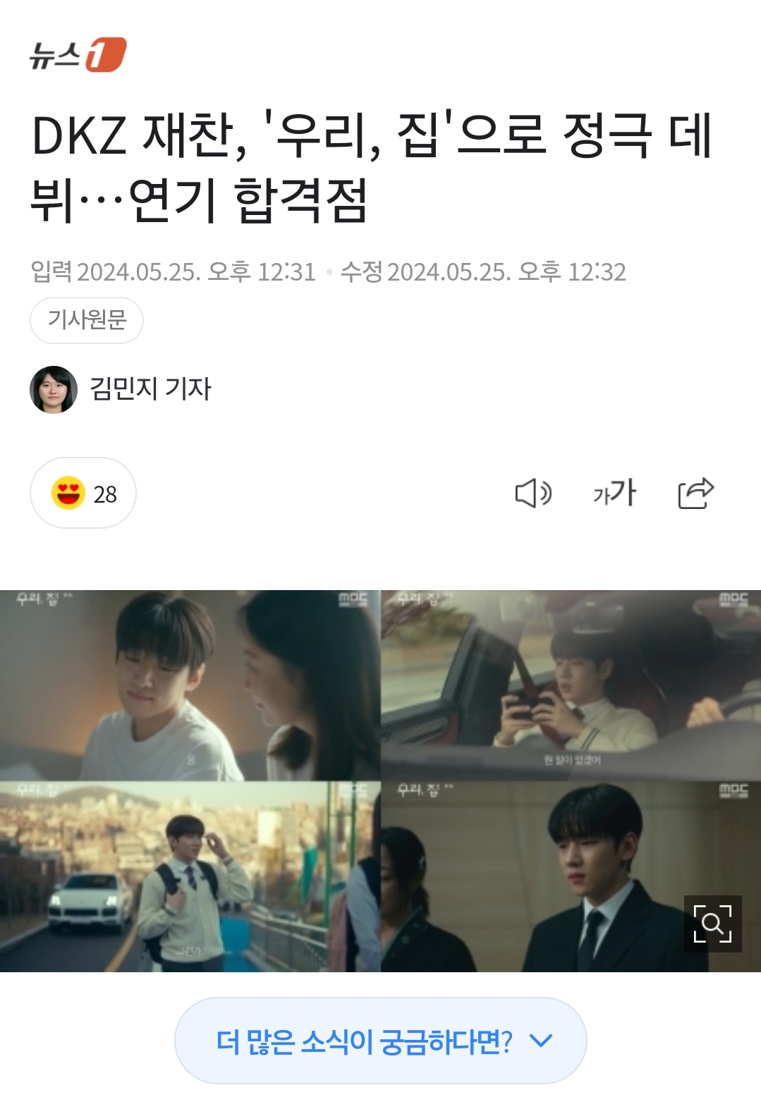 DKZ 재찬, '우리, 집'으로 정극 데뷔…연기 합격점